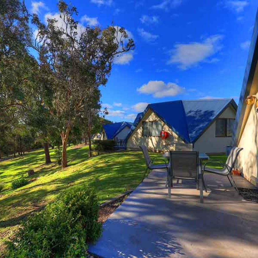 The solar heated pool, under cover Barbeque area and Communal room are centrally located allowing for easy access from any cabin in the park. All cabins are located within an easy 3 minute stroll down the front lawn to the beach or lake.